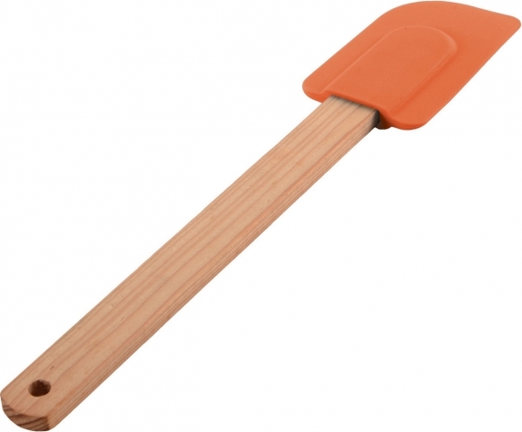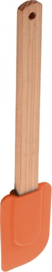 Küchenspachtel in klassischer Form. Weiche Kanten haften perfekt an dem Gefäß. Material: Silikon - hitzebeständig von -40 °C bis +220 °C, Holz. Abmessungen: Breite 5 cm, Tiefe 26 cm.