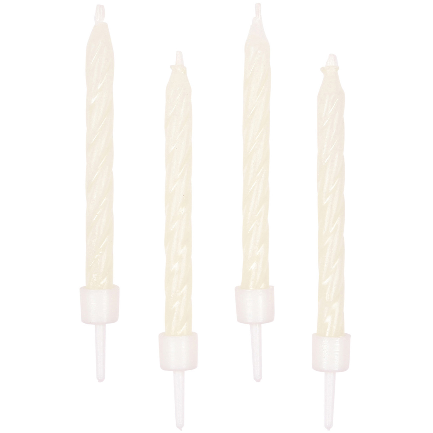 Satz von 20 Kuchkerzen in weiß-silberner Farbkombination.