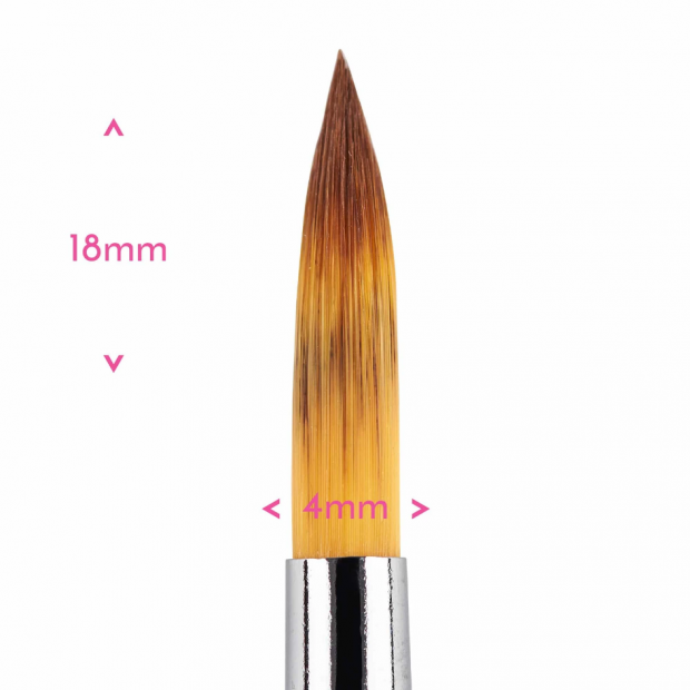Spitzer Pinsel Nr. 4 hat eine schmale Spitze mit langen, dicht beieinander stehenden Haaren. Er ist ideal für feinere Details einschließlich Strichen, Schriftzügen, Konturen, zarten zusammenhängenden Strichen und Retuschen. Er hat weiche synthetische Borsten.