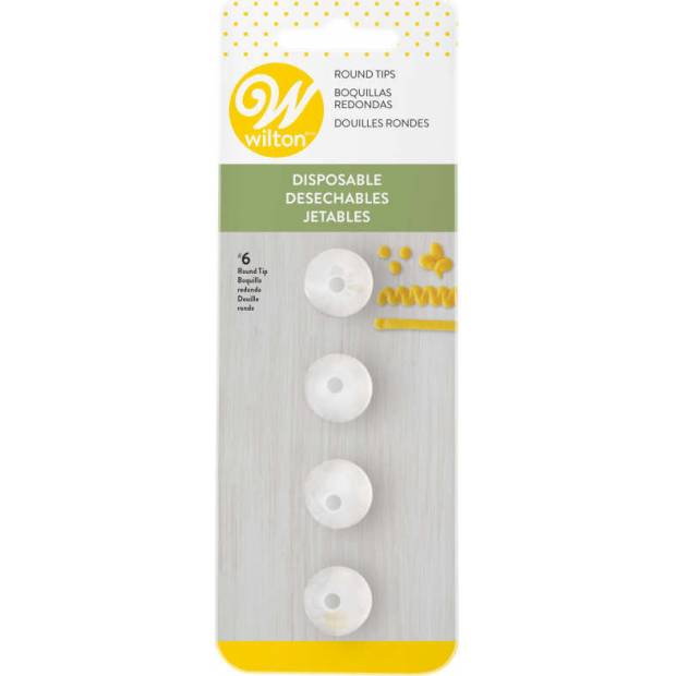 Recycelbare Kunststoffaufsätze, die Ihnen helfen, Verschüttungen in der Küche zu vermeiden. Kombinieren Sie sie mit einer Einweg-Dekorsack, dekorieren Sie die Torte und werfen Sie alles nach dem Gebrauch weg. Sie können in warmem Seifenwasser gereinigt und wiederverwendet werden. Das Set enthält vier Spitzen Nr. 6.