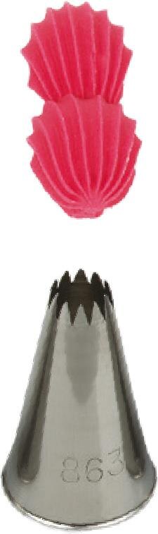 Metall-Pâtissieraufsatz geschnitten 863/4B für Zuckerwerkzeuge garantiert eine präzise und einzigartige Verzierung. Die Spitze kann wiederholt mit dem Spritzbeutel verwendet werden. Sie ist aus Edelstahl gefertigt; Fettflecken bleiben auf der Oberfläche nicht zurück. Nicht geeignet für die Spülmaschine.