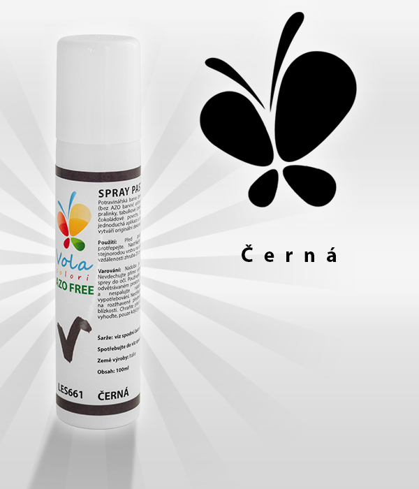 Schokoladenfarbe aus der Sprühdose in Schwarz für das Verzieren von Schokolade, Schokoladenpralinen oder anderen Schokoladeprodukten. Sie erhalten eine einzigartige Oberfläche. Das Spray lässt sich sehr einfach anwenden und Sie können damit originelle Dekorationen erstellen.