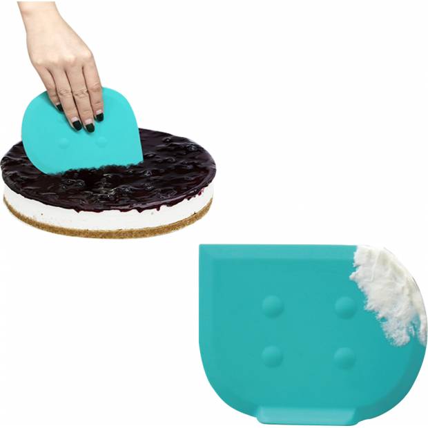 Backspachtel ist ein nützliches Hilfsmittel zum Auskratzen von Resten an Cremes, Teigen oder Glasuren aus der Schüssel. Damit verteilen Sie den Teig oder andere süße Massen auf die benötigte Größe. Sie besteht aus Silikon.