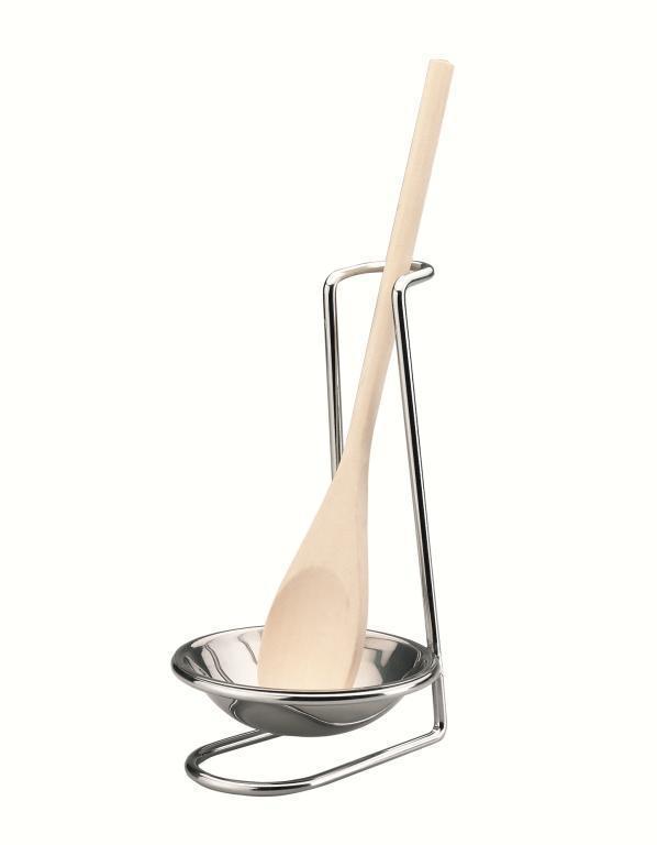 Origineller Weg, die Arbeitsfläche oder den Bereich um ein vorzubereitendes Gericht herum nicht zu verschmutzen. Den Holzlöffel legen Sie einfach in einen geschmackvollen Ständer, und Saucen oder andere Zutaten tropfen in den Bereich eines Edelstahlbechers. Der Löffelhalter ist robust und dadurch sehr stabil.