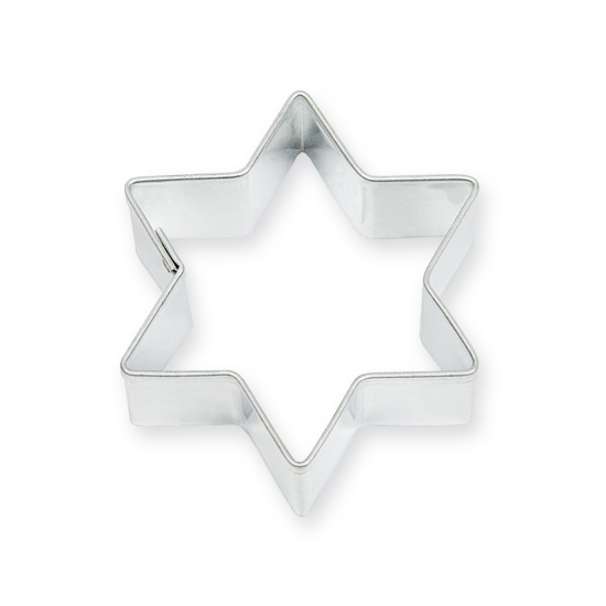 Ausstechform für Plätzchen in Form eines sechszackigen Sterns besteht aus lebensmittelechten verzinnter Blech. Die scharfe Kante der Ausstechform garantiert die perfekte Form, die glatte Oberfläche lässt sich leicht reinigen. Die Ausstechform ist glatt, die Bandhöhe beträgt 16 mm.