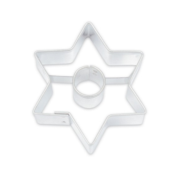 Ausstechform ist aus verzinntem Blech hergestellt, gesundheitlich völlig unbedenklich. Die scharfen Kanten garantieren ein perfektes Ergebnis, glatte Oberfläche leichte Reinigung. Der Stern mit ausgeschnittenem Zentrum in Kreisform lässt sich nach dem Backen nach Fantasie mit verschiedenen Backmassen, Cremes und essbarem Schmuck mit praktischen Dekorieraufsätzen dekorieren. Maße: 4 x 4,6 cm / Höhe 1,6 cm