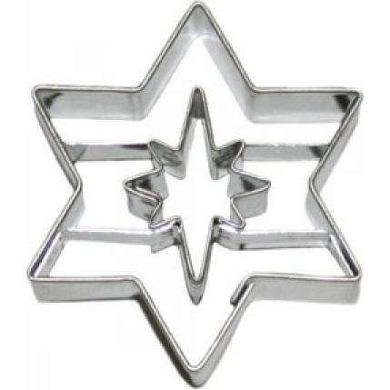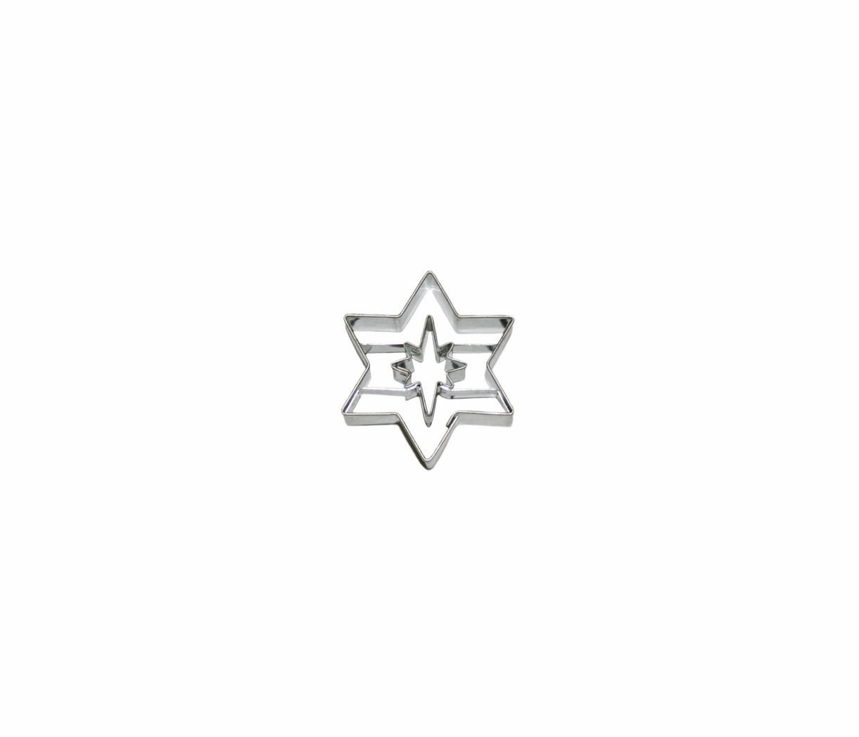 Ausstecher für Plätzchen aus verschiedenen Teigsorten in Form eines achtszackigen Sterns mit freiem Mittelteil nach dem Ausschneiden. Er besteht aus lebensmittelgeeignetem verzinntem Blech und lässt sich nach der Benutzung sehr leicht reinigen. Zur endgültigen Dekoration der gebackenen Plätzchen können Sie verschiedene Konditormassen, Cremes, essbare Dekorationen und Dekorationssets verwenden, die wir natürlich auch im Angebot haben. Abmessungen: 4 x 4,6 cm / Höhe 1,6 cm