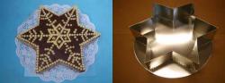 Eine Form in der Form eines sechszackigen Sterns eignet sich zur Vorbereitung eines festlichen Snacks. Sie können sie in Backöfen mit Elektrik, Gas oder Heißluft verwenden. Die Form immer nur von Hand reinigen, vor dem Verstauen gründlich trocken wischen.