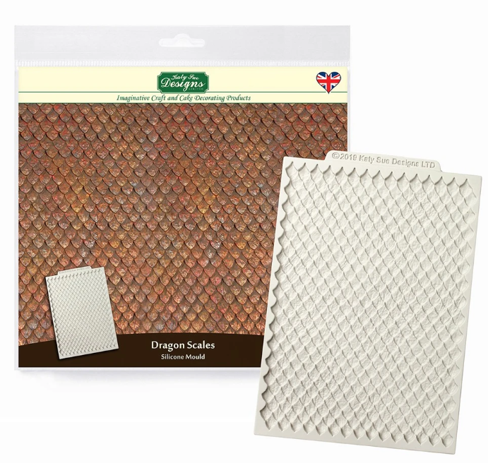 Forme dir einfach mit dieser strukturellen Unterlage Dekorationen mit Drachenhaut-Effekt, die für die Herstellung weiterer Dekorationen dienen können. Produkte aus der Form sehen schön aus als Dekoration auf einer Hochzeitstorte. Sie werden mit Zuckerpaste oder Fondantpaste. Mit Formen arbeitet man sehr gut. Drücken Sie die Masse gleichmäßig nach innen hinein, glätten Sie sie gleichmäßig mit einem Nudelholz. Kratzen Sie überschüssige Masse ab und ziehen Sie danach die Paste von den Rändern ab, damit Sie sie aus der Form lösen können. Bewahren Sie die fertige Dekoration auf einer trockenen und sauberen Oberfläche auf.