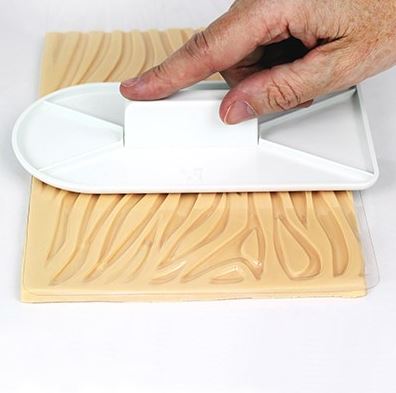 Dekorative Struktur-Unterlage mit Zebramuster-Relief zur Dekoration von Kuchen. Nachdem der Teig bzw. die Masse von der Unterlage bedeckt ist, spiegelt sich ihr Muster auf der äußeren Seite der Süßigkeit wider. Erzeugen Sie mit ihrer Hilfe eine beeindruckende Dekoration. Die Unterlage eignet sich ideal zur Verwendung mit Zuckerguss (Fondant), Modelliersmassen, Gumpaste oder Marzipan. Beide Seiten des Tuchs können verwendet werden, um entweder ein Relief- oder ein erhöhtes Design zu erzeugen. Abmessungen 15 x 30,5 cm.