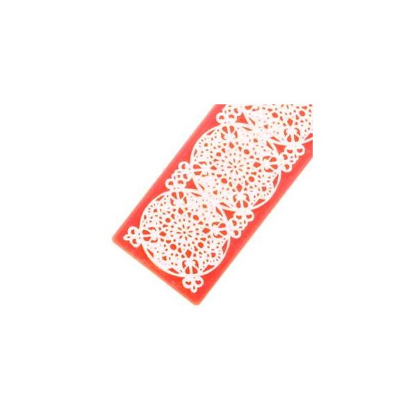 Mit dieser Silikonform zaubern Sie ganz einfach Spitzen. Die Größe der Spitze beträgt 6x21 cm. Sie kann mit der Sweet Lace Express-Masse verwendet werden, gegebenenfalls auch mit anderen Modellier- und Verziermassen.