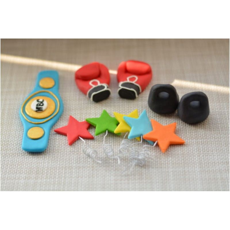 Wir haben etwas Besonderes für Boxfans. Dieses Set süßer Cake-Topper wird sie sicher erfreuen. Wir haben für Sie zehn Figuren vorbereitet, die sich zu einer einzigartigen Komposition zusammenfügen. Im Lieferumfang befinden sich fünf Sternchen an Federn, jedes in einer anderen Farbe. Das Set enthält außerdem ein Paar roter Boxhandschuhe und ein Paar Kugelhanteln. Die letzte und wichtigsten Figur ist jedoch der blau-goldene WBC-Gürtel. Wie Sie sehen, richtet sich dieses Set an alle Boxfans – und nicht nur an sie. Unsere süßen Accessoires werden handgefertigt mit sorgfältiger Detailgenauigkeit. Jede Figur ist einzigartig und individuell. Doch das ist noch nicht alles. Alle bestehen aus Fondant, der völlig essbar ist. Sie können ihn daher bedenkenlos gemeinsam mit dem Kuchen verzehren! Unser Boxs-Set – Zuckerfiguren – wird auf jeder Torte hervorragend aussehen, unabhängig von Größe, Farbe oder Form. Was den Anlass angeht, überlassen wir die Wahl Ihnen. Besonders empfehlen wir es für Geburtstagsfeiern. Wir glauben, dass schon so ein kleines Accessoire die gesamte Feier verändert. Es wird die Atmosphäre aufhellen und Ihre Gäste werden sich sicherlich lange daran erinnern! Das Dekorieren des Kuchens war noch nie so einfach! Arrangieren Sie einfach die Figuren auf der Torte. Erstellen Sie wirklich wunderbare Arrangements nach Ihren eigenen Ideen! Selbst diejenigen, die diese Art der Verzierung normalerweise nicht genießen, schaffen es. Wir garantieren, dass Ihre Torte genauso aussieht wie die, die Sie in einer Bäckerei kaufen würden! Diese Figuren verleihen jedem Kuchen, sogar dem gewöhnlichen, Zauber. Sie eliminieren auch den Bedarf an weiteren Anpassungen. Warten Sie nicht, kaufen Sie jetzt! Wir garantieren, dass Sie nicht enttäuscht werden! Das Set enthält 10 Stück. Maße: WBC-Gürtel – Länge: 11 cm, Boxhandschuhe – Höhe: 4,5 cm; Breite: 3,5 cm, Sterne (5 Stk.) – Höhe: 4 cm (ohne Federung); Breite: 4 cm, Kugelhantel – Höhe: 3,5 cm; Breite: 3,5 cm. HINWEIS: Einige Elemente dieser Dekoration enthalten Metallfedern, die nicht essbar sind. Puderzucker, Glukosesirup, Kristallzucker, Glycerin, Säureregulator E 330, Maisstärke, modifizierte Maisstärke, Konservierungsstoff E 200 Verdickungsmittel E 412 ?415, ? 466, Lebensmittelaroma "Vanille", Lebensmittelunternehmen: 2 124,10 ? 122, ? 133, ? 132, ? 153 Lagerbedingungen: lagern Sie an einem dunklen Ort bei 0-25 ?? und einer relativen Luftfeuchtigkeit von nicht mehr als 75 %. Nährwertangaben pro 100 g Produkt: Kohlenhydrate - 83 g, Fett - 0 g, Eiweiß - 2 g. Energieverbrauch (kcal) pro 100 g Produkt: 1465 kJ / 324 kcal.