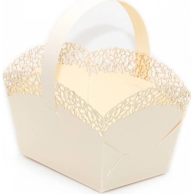 Svatební košíček s ouškem je vhodný na svatební výslužky, cukroví i koláčky