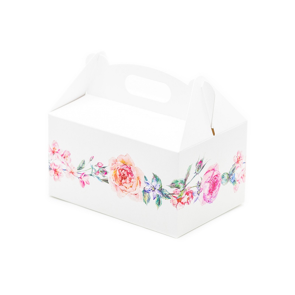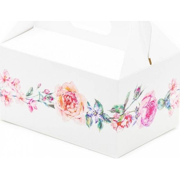 Svatební krabička na výslužku bílá s květinami (13 x 9 x 7 cm)
