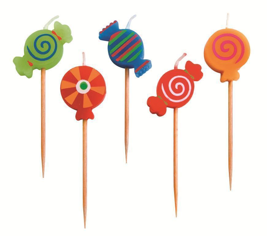 Pořiďte si praktickou ozdobu libovolných pochutin, převážně ale dortů, moučníků nebo honosných druhů pečiva. Právě do nich totiž můžete zapíchnout nápadité svíčky v podobě bonbónů, které jsou umístěny na dlouhých špejlích vybavených hrotem. Novodobá ozdoba na pochutiny.