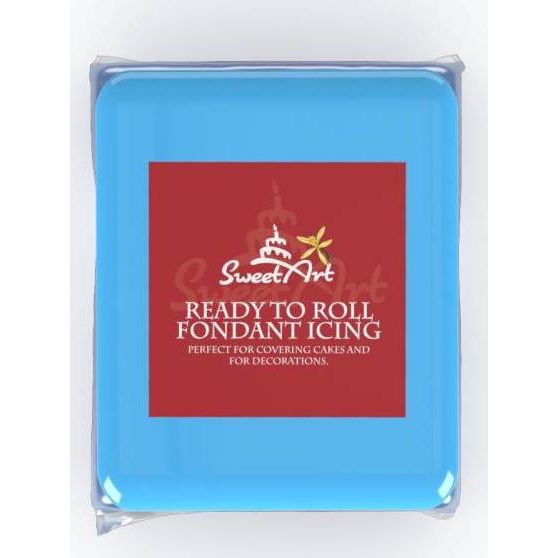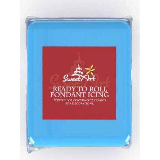 Neonblaue Zuckerpaste mit Vanillegeschmack zum Überziehen von Torten und zur Herstellung von Zuckerfiguren.