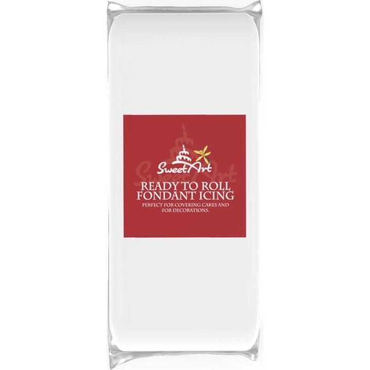Weiße Puderzuckerglasur mit Vanillegeschmack zum Überziehen von Kuchen und zur Herstellung von Zuckertierfiguren.