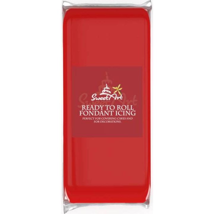 Rote Zuckermasse mit Vanillegeschmack zum Überziehen von Kuchen und zur Herstellung von Zuckerkonfektfiguren.