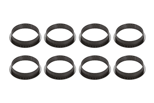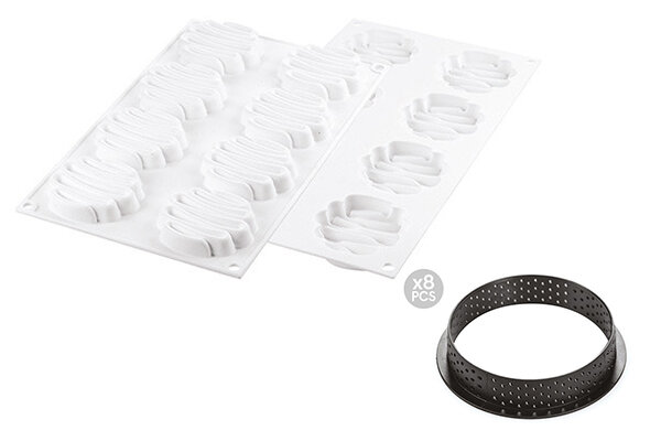 Neuer Weg, eine Tartelette zu entwerfen und dieses traditionelle Dessert noch eleganter zu machen. Dieses Set besteht aus zwei verschiedenen Elementen. 8 kleine gelochte Tartlettenkreischen und 8 Silikonformen mit sehr feinem Design.