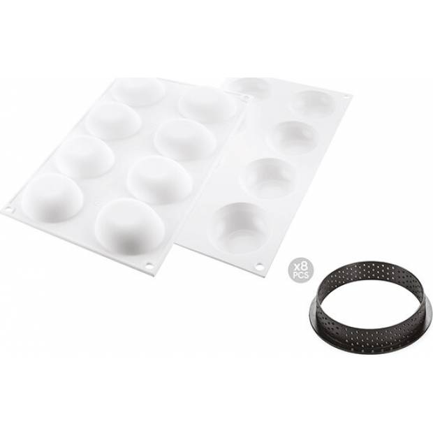 Set Tarte Ring Mini Palette Moule 3D Yann Couvreur Silikomart Professional ist ideal für die Herstellung eleganter und raffinierter Desserts. Das Set Tarte Ring Mini Palette Moule 3D Yann Couvreur wurde in Zusammenarbeit mit dem Yann Couvreur Pastry Chef und dem Schöpfer des Shiso-Limette-Kuchens, eines echten Rezepts, geschaffen. Sobald Ihre Tartelettes geformt sind, bestreichen Sie sie mit einer Samtsprühung oder einer Spiegelglanzglasur, um eine Oberfläche zu erhalten, die der besten Konditorei würdig ist. Das Set besteht aus: - 8 Ringen mit Durchmesser 70 mm aus einem bruchfesten, thermoplastischen Verbundmaterial, geeignet zum Kochen und zum Herstellen einer Basis - Silikonform mit Durchmesser 64 mm zur Herstellung von Schäumen oder Cremes zum Auftragen auf zarte Krusten. Die Ringe sind antihaftbeschichtet und rostfrei, ermöglichen gleichmäßiges Kochen und zeichnen sich durch hohe Hitzestabilität aus. Diese professionellen Formen können im Ofen, in der Mikrowelle oder im Gefrierschrank verwendet werden. So können Sie jede Zubereitung für eine Gourmet- und Design-Torte vorbereiten. Silikonformen von Silikomart bestehen aus 100% flüssigem Platin silikon, dem besten Silikon auf dem Markt, da sie keine toxischen Elemente enthält. Und außerdem sind sie gesund, Schalen geben keinen Geruch ab und haben einen geringen Flüchtigkeitsstoffgehalt. Silikomart-Silikonformen sind sehr praktisch, da sie Temperaturen von -60° bis +230° aushalten. Sie können sie also im Ofen, in der Mikrowelle oder im Gefrierschrank verwenden. Silikonmaterial der 3D-Formen ermöglicht deren Biegung ohne Beschädigung, was beim Herausnehmen von Kuchen und Gebäck sowie bei der Aufbewahrung sehr hilfreich ist. Außerdem sind sie spülmaschinenfest. - Kreisabmessungen: Ø 70 x H 20 mm - Formabmessungen: Ø 68 x H 18 mm - Inhalt: 8 x 47 ml = 376 ml