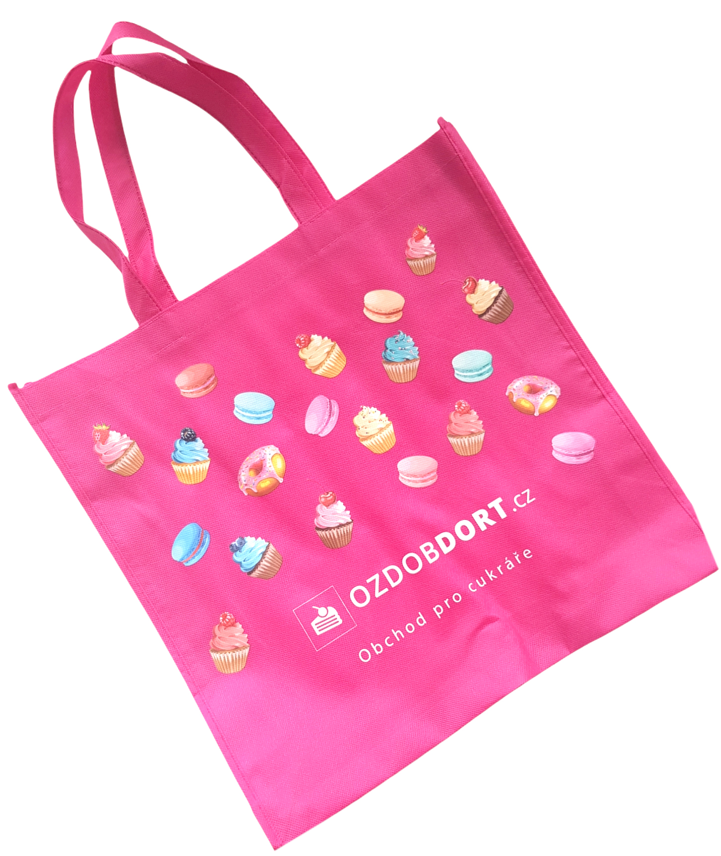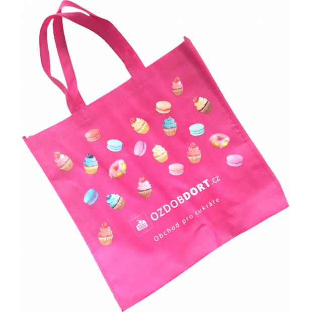 Stilvolle rosa Einkaufstasche. Sie kann in der Waschmaschine gewaschen werden. Die Tasche ist bedruckt mit dem Logo und Motiven ozdobdort.cz
