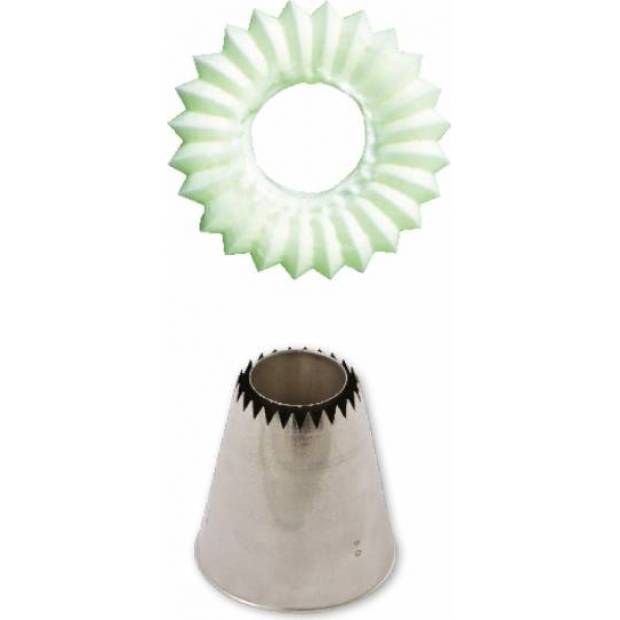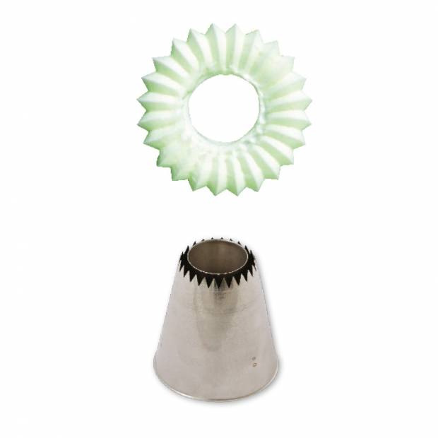 Metall-Tortenverzierungs-Tülle 795 eignet sich für Elisenlebkuchen und Baisergebäck. Damit erzielen Sie garantiert präzise und regelmäßige Formen. Die Tülle kann wiederholt mit einer Spritztüte verwendet werden. Sie ist aus Edelstahl gefertigt, Fettflecken bleiben auf der Oberfläche nicht haften. Sie ist nicht für die Spülmaschine geeignet.