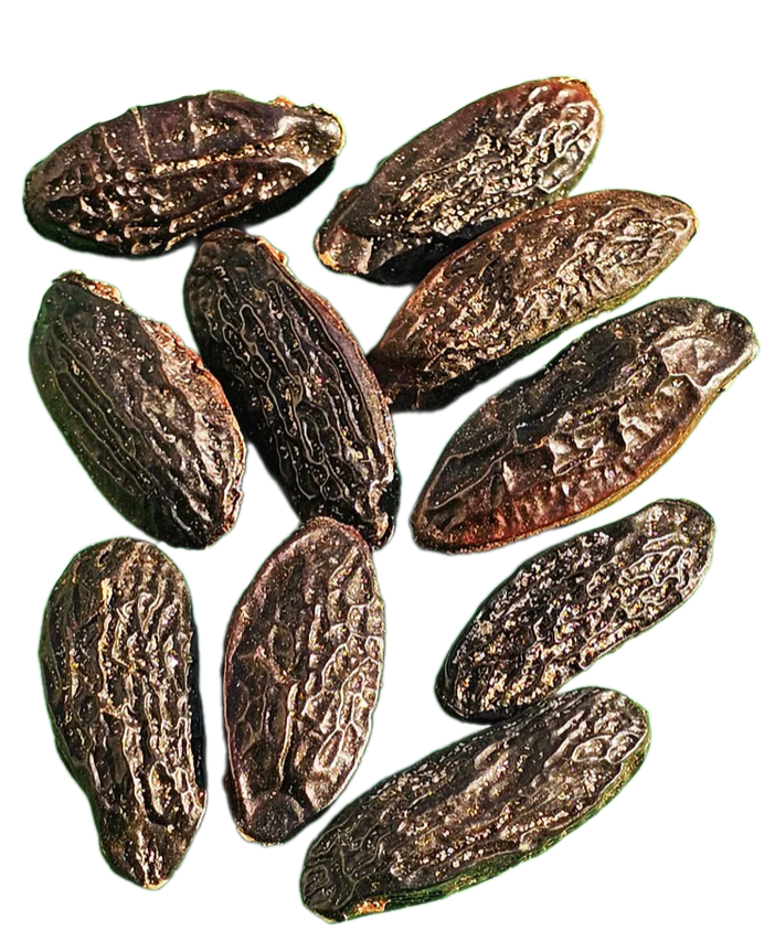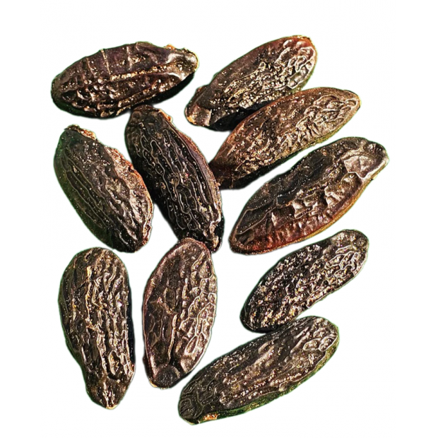 Verpackung enthält 250 g köstlicher Tonkabohnen aus dem Amazonas. Auf halbem Weg zwischen Obst und Gewürz sind Tonbohnen getrocknete Samen des tropischen Baums, der nur in Südamerika wächst. Sein Duft ist einzigartig und gleichzeitig sehr assoziativ mit Aromen, die wir gut kennen: Mandeln, Karamell, Heu, Vanille. Dieser kleine Anblick ist sehr vielseitig und kann sowohl roh als auch mazeriert verwendet werden und eignet sich für süße Küche (Desserts, Cremes, Kuchen usw.), aber auch für herzhafte Gerichte (Salate, Fleisch, Gemüse usw.). Es ist also wahrlich ein kleiner Schatz, insbesondere weil sein erschwinglicher Preis ihn zu einem großartigen Verbündeten für die Wiederbelebung Ihrer Küche zu geringeren Kosten macht. In Wirklichkeit verwenden wir ihn selten, weil sein Aroma sehr stark ist; nur eine Tonkabohne reicht aus, um mehrfach verwendet zu werden! Wie verwenden? Einfach fein reiben zu kleinen Spänen oder mahlen, um ein stark aromatisches Gewürz zu erhalten. Bewahren Sie es trocken, kühl und lichtgeschützt auf.