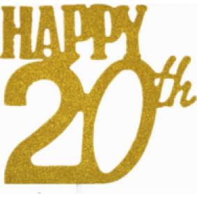 Nicht essbare Dekoration für den Kuchen, zum Beispiel zur Feier des 20. Geburtstags oder des 20-jährigen Jubiläums der Hochzeit. Der Spieß ist in Goldfarbe gehalten, um eine festlichere Note zu verleihen.