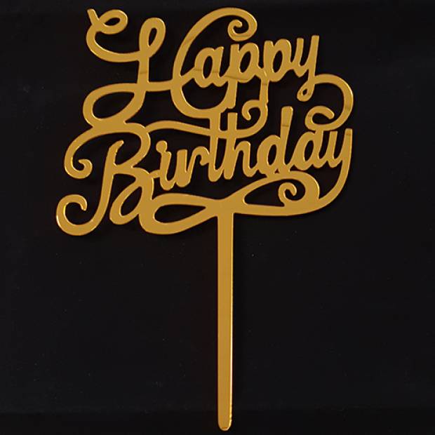 Der Happy Birthday Tortenaufleger ist aus goldfarbenem Acryl gefertigt und mit Herzen verziert. Der Tortenaufleger lässt sich leicht in die Torte stecken und hält fest an seinem Platz. Maße: +/- 11 cm x 16 cm = Breite x Höhe