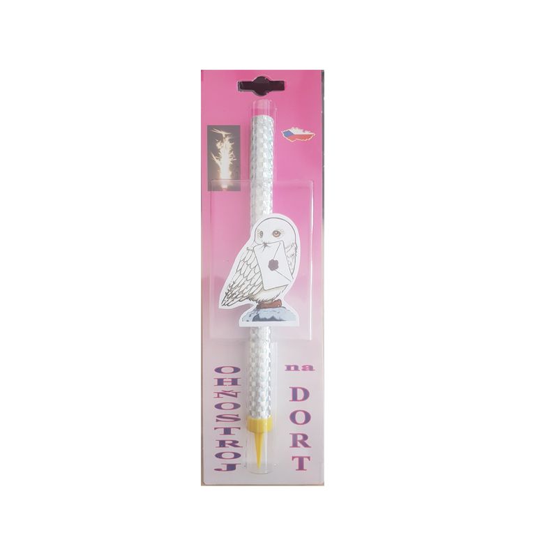 Extrem buntes Tortofontänen in Form einer Eule Hedvika mit funkelnden Tausenden von Funken, ist eine perfekte Dekoration für eine Geburtstagstorte, nicht nur für Kinder, sondern auch für Erwachsene, besonders wenn sie ihren runden Geburtstag feiern. Bunte Tortofontänen eignen sich auch für viele andere Anlässe und werden zu einer interessanten Abrundung von Torten und Gebäck, die bei verschiedenen Arten von Feiern serviert werden. Eine Tortofontäne kann bei Feierlichkeiten runder Jubiläen, verschiedener Arten von Jubiläen, beruflicher Erfolge oder spezieller Ereignisse wie Hochzeiten, Taufen, Empfang und vielen weiteren genutzt werden. Bunte Tortofontänen lohnen sich immer dann zu verwenden, wenn man einer Veranstaltung eine festliche Note verleihen möchte.