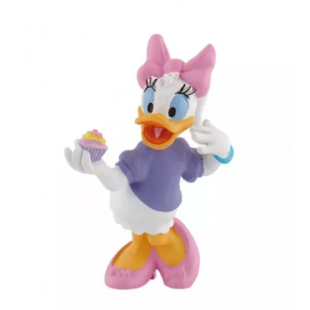 Bullyworld Disney-Figurine Daisy Duck mit Kuchen. Daisy ist die schöne Freundin von Donald dem Enten und die beste Freundin von Minnie Mouse. Daisy ist nett, bezaubernd, redet gerne und ist ein wenig frech. Sie ist zornig entschlossen und versucht auf jede erdenkliche Weise zu erreichen, was sie will. Die Figur ist eine handbemalte, ungiftige Dekoration und ein Spielzeug für Kinder ab drei Jahren.