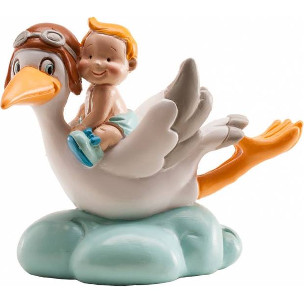 Ideale Figur für das Tortendekorieren für ein Baby, zum Anlass der Geburt und der Taufe. Dieser dekorative Bestandteil der Torte stellt ein kleines Kind dar, das auf einem Storch reitet. Diese Tortendekoration erfüllt alle Anforderungen europäischer Normen und ist für den Kontakt mit Lebensmitteln geeignet. Das Produkt ist für den professionellen Einsatz in Konditoreien geeignet. Diese essbare Dekoration kann wiederverwendet werden; Sie können sie als Erinnerungsstück an Ihren wertvollen Tag aufbewahren. Höhe 10 cm.