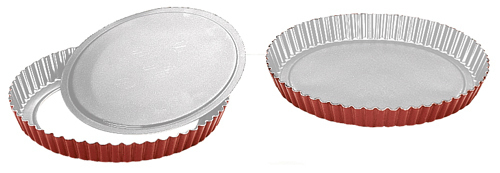 Leichte Aluminium-Form mit geriffeltem Rand ist ideal für die Zubereitung verschiedener süßer Kuchen und herzhafter Quiches. Dank zwei antihaftbeschichteten Schichten und dem herausnehmbaren Boden lassen sich Kuchen immer leicht lösen. Durchmesser der Form 28 cm, Höhe 3 cm, Volumen 2 l.