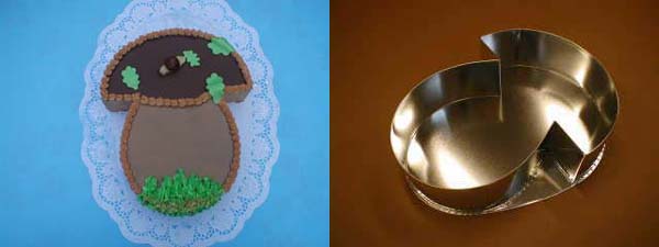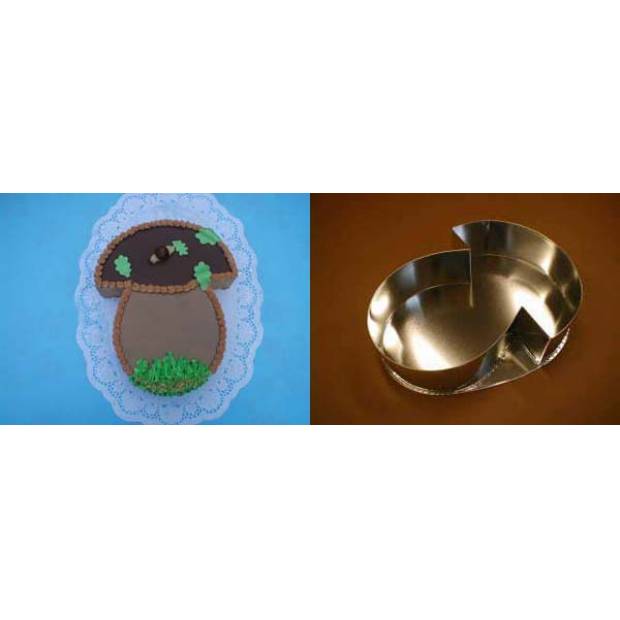 Bereiten Sie einen Pilzform-Kuchenboden vor! Den ursprünglichen Kuchenboden können Sie nach dem Backen mit Sahne verzieren oder mit Fondant überziehen. Die Form können Sie in jeden Backofentyp geben. Vor dem Backen den Boden immer gründlich mit Fett ausfetten und mit Mehl bestäuben.