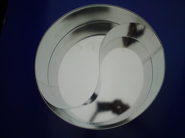 Form für zwei Korpusstücke in Tränenform, die Sie zu dem Yin-Yang-Symbol zusammensetzen können. Die Originalform ist aus verzinktem Blech gefertigt und in jedem Typ Backofen verwendbar. Die Form nur von Hand reinigen.