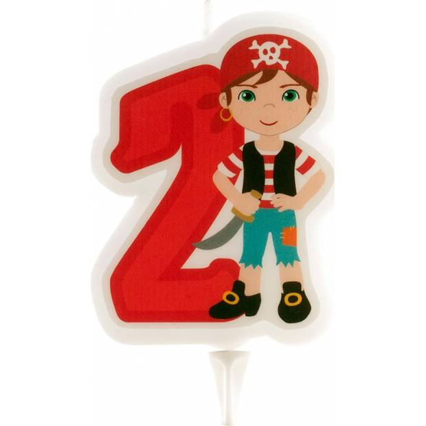 Piratenn-Cake-Topper in Form eines Piraten mit der Zahl 2 ist ca. 7 cm groß und hat einen Kunststoffspieß für eine einfache und schnelle Befestigung am Kuchen oder Muffin. Kann einzeln verwendet werden oder in Kombination mit anderen Kerzen oder Lichterfontänen. Wird auf ein fertiges Backprodukt gesetzt. Die Kerze ist eine essbare Dekoration.