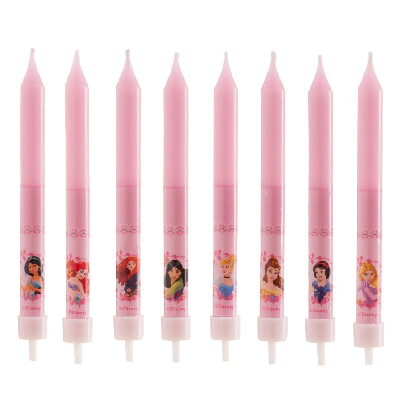 Kuchendeckkerzen mit Bildern von Prinzessinnen. Sie können eigenständig oder in Kombination mit anderen Kerzen oder Lichterfontänen verwendet werden. Auf eine fertige Torte setzen. Die Kerze ist eine essUNdekoration. ImSetzung 8 Stück Kerzen. Höhe 9 cm.