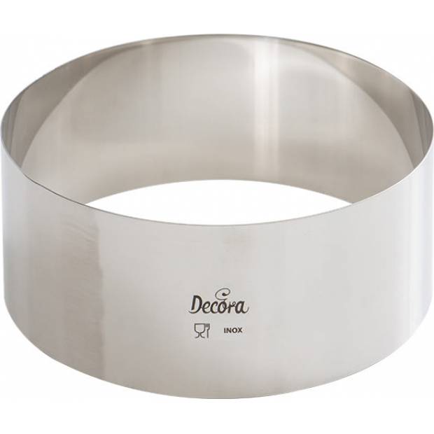 Runder Tortenring geeignet für die Zubereitung von gebackenen und ungebackenen Kuchen und Desserts. Legen Sie ihn mit Folie oder Backpapier aus und füllen Sie ihn mit Teig oder Masse. Abmessungen 14 x 6 cm. Es gibt mehrere Größen und Formen von Ringen zur Auswahl.