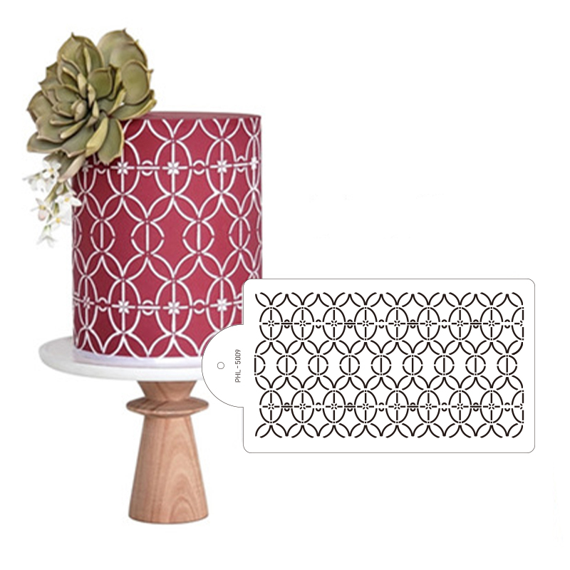 Professionelle Stencil-Vorlage zum Dekorieren von Kuchen. Netz Muster erleichtert Ihre Arbeit. Aus hochwertigem Material hergestellt, daher sicher, umweltfreundlich und ideal für den Langzeiteinsatz. Stencil-Vorlagen eignen sich auch für Eiskreme-Desserts, heißes Fondant, Buttercreme, Kakaopulver oder jede Glasur-Masse. Verleihen Sie Ihrer Kreation etwas Textur und Tiefe mit dieser Kuchenvorlage.
