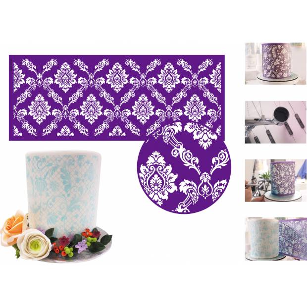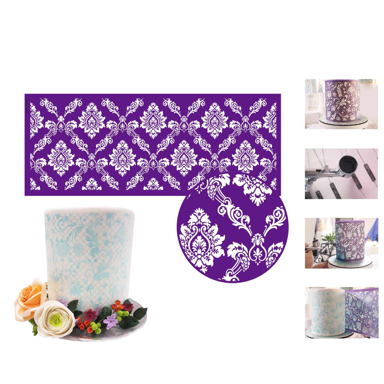 Professionelle Vorlage zum Dekorieren von Kuchen ist geeignet für Schablone und Airbrush. Es ist notwendig, sie fest auf den Kuchen zu legen und während des Auftragens der Farbe nicht zu bewegen. Nur so wird das Muster absolut makellos.