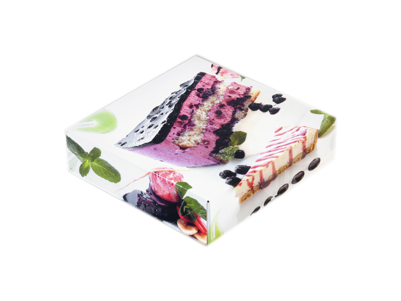 Bedruckte Box aus hochwertigem festen Karton zum sicheren Transport von Kuchen und anderen Backwaren.