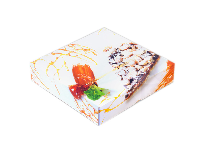 "Boxen mit farbigem Druck für Rollen, Kuchen, Torten, Gebäck, Süßwaren und verschiedene weitere Konditoreiprodukte aus sehr hochwertigem festen Karton.