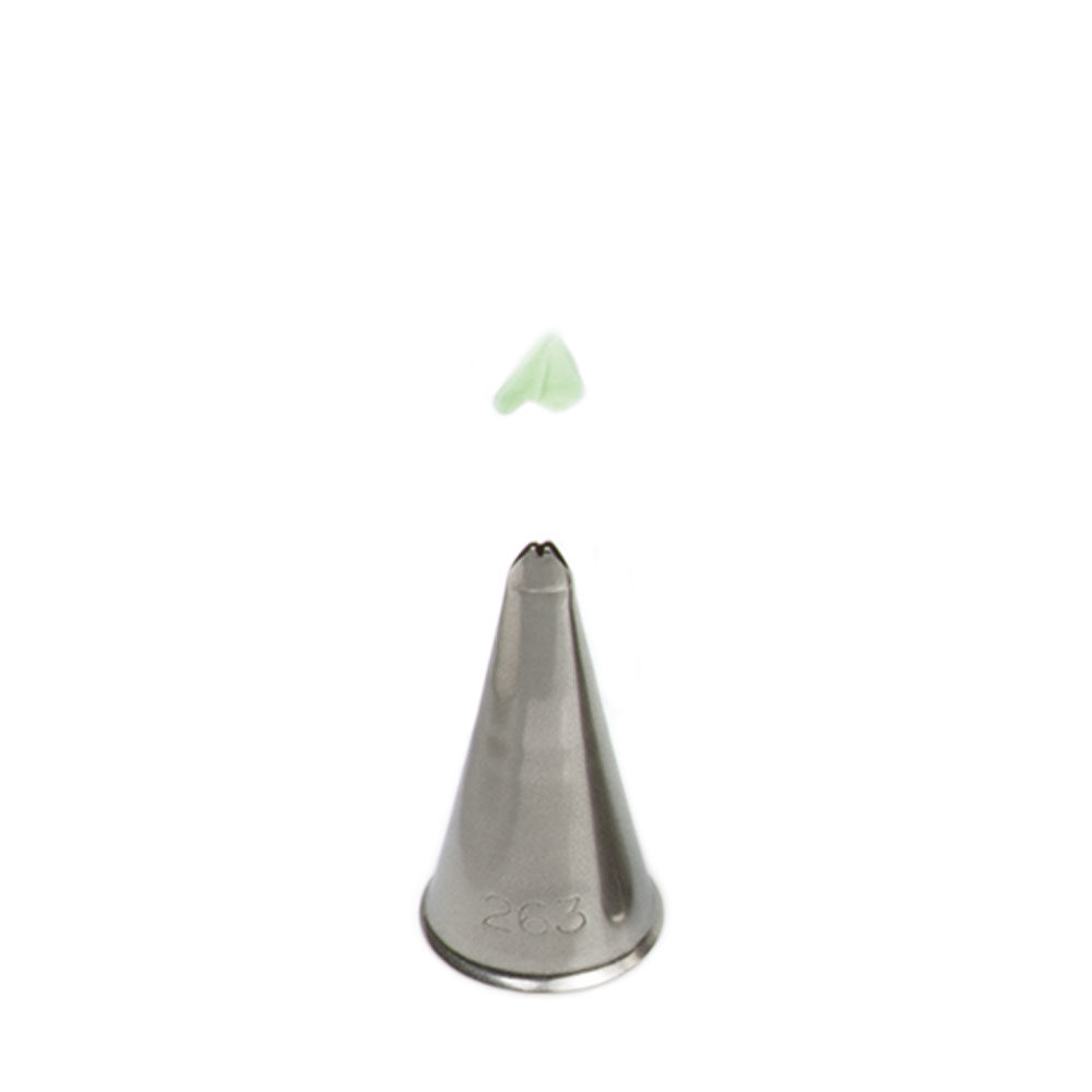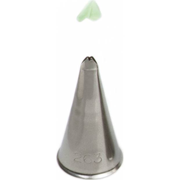 Metall-Pastry-Verzierungs-Tülle 263/65S für Blätter garantiert Ihnen eine präzise und einzigartige Dekoration. Die Tülle kann wiederholt mit dem Spritzbeutel verwendet werden. Sie ist aus Edelstahl gefertigt, Fettflecken bleiben auf der Oberfläche nicht haften. Nicht geeignet für die Reinigung in der Spülmaschine.