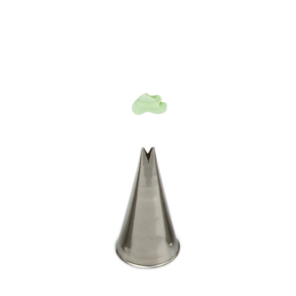 Metall-Tortenverzierungs-Tip 349/352S für Blätter, mit dem Sie eine präzise und einzigartige Verzierung erstellen. Die Spitze kann wiederholt mit der Spritztüte verwendet werden. Sie ist aus Edelstahl gefertigt, Fettflecken bleiben auf der Oberfläche nicht haften. Nicht geeignet für die Reinigung in der Spülmaschine.