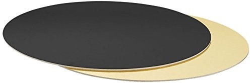 Praktische Kuchenunterlage sorgt für eine einfache Handhabung. Von unten ist sie mit Karton verklebt. Sie ist in einer Schwarz-Gold-Kombination hergestellt. Die runden Kuchenunterlagen aus Papier passen sowohl in die Box als auch auf das Servierbrett. Sie ist 0,3 cm dick, Durchmesser 24 cm.