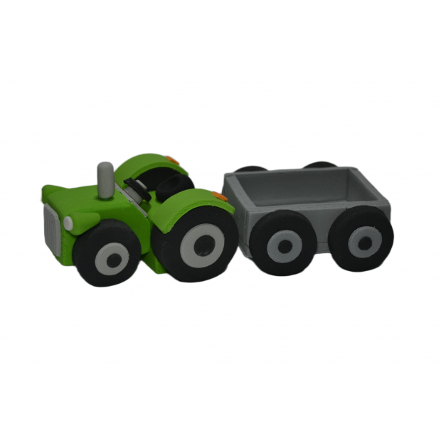 Manuell modellierter grüner Traktor mit Anhänger wird eine authentische ländliche Atmosphäre auf die Torte bringen und jeden kleinen Bauern erfreuen.