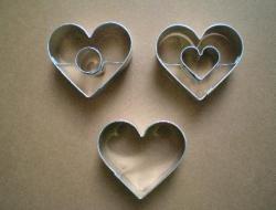 Herzen sind aus verzinktem Blech hergestellt. Ausstechformen sind glatt. Im Set finden Sie drei Ausstechformen: Herz, Herz mit rundem Zentrum und Herz mit Herzzentrum. Das Set eignet sich zur Zubereitung von klebreichem Gebäck.