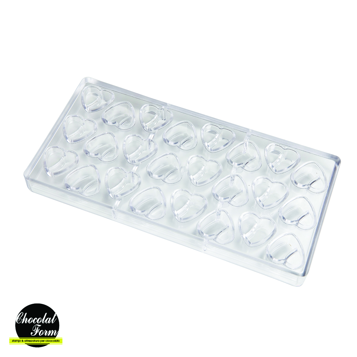 Polycarbonatform zum Herstellen perfekter Schokoladenpralinen. Diese hochwertige europäische Form ist einfach zu verwenden, Ihre Schokolade wird eine glatte, glänzende Oberfläche haben und sich leicht lösen lassen. Um farbige Schokoladenstücke zu erhalten, streichen Sie die Form dünn mit einer Schicht farbigem Kakaobutter, bevor Sie die Form mit Schokolade füllen. Das Design dieser Form ermöglicht es, ein perfektes Herz zu formen.