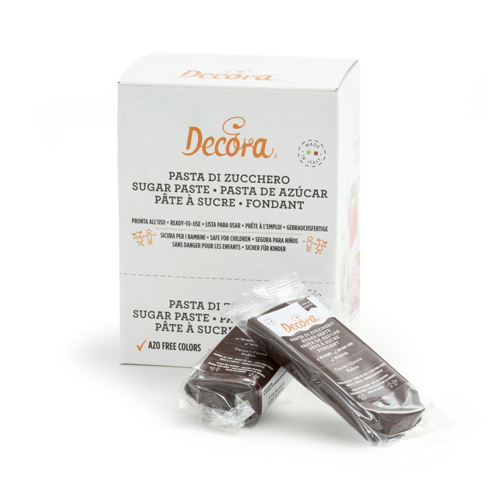 Kakaobohne Modellierfond in vakuverpackten Beuteln. Der Modellierfond hat durch das Kakao-Butter eine perfekte Formbarkeit und Elastizität, ist ideal zum Bestreichen von Kuchen, zum Formen von Blumen und 3D-Objekten, kann von Hand oder mit Teig bis zu einer Dicke von 1 mm ausgerollt werden, angenehm im Geschmack dank leichter Mandelaroma. Die gefärbte Zuckermasse bietet mehrere dekorative Möglichkeiten und spart dabei viel, was sie zu einer idealen Paste auch für die Herstellung von Gegenständen und Dekorationen macht, wie Blumen und Blätter, und sorgt dafür, dass Gegenstände und Dekorationen dauerhaft perfekt bleiben, ohne Risiko des Zusammenfallens oder Brechens.