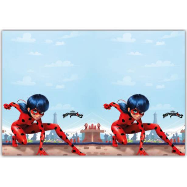 Tischtuch aus Kunststoff mit Marienkäfer-Motiv. Maße 180 x 120 cm.